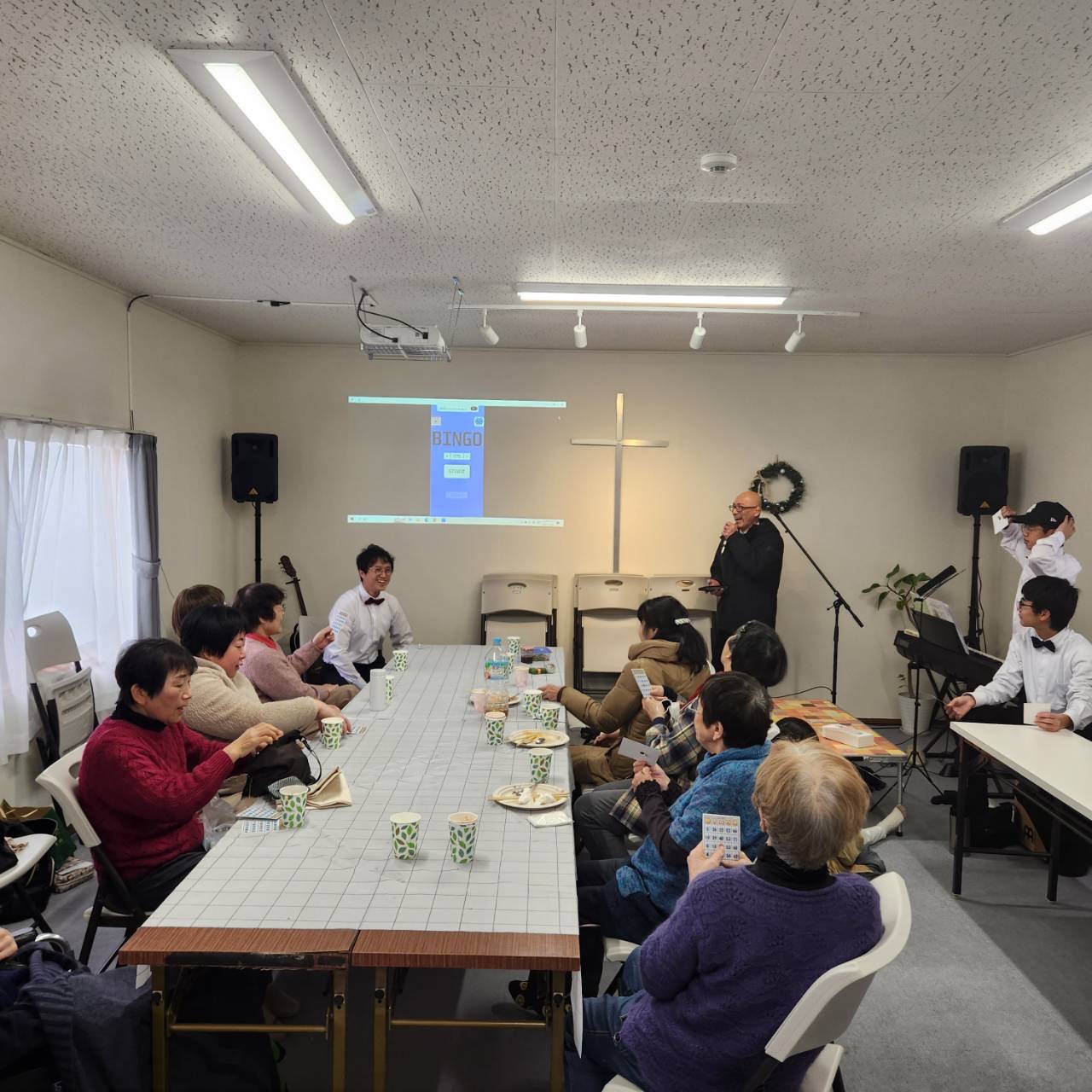 奏楽は、いつものピアノに加え、ギターとバイオリンとカホンが編成され、伝統的な讃美歌だけではなくカジュアルなワーシップソングや子ども向けの賛美など親しみやすい曲を歌います。歌うときにはリードしてくれる方がいて、歌詞は前方のスクリーンに表示されますから、初めて歌う曲でもすぐに口ずさめます。